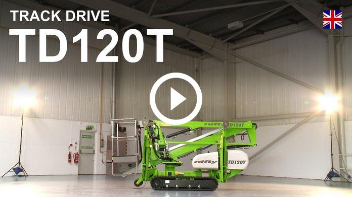 Nifty TD120T har en arbetshöjd på 12,20 meter och erbjuder bra grepp i ojämn terräng och klarar stigningar på upptill 60 %. Nifty TD 120T klarar maxlast i plattformen vid full räckvidd.